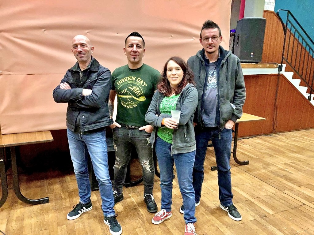 Il y avait David en lead guitare, Miguel au chant, Xavier à la basse, « papy » (Stéphane) à la guitare rythmique et moi derrière les fûts (à la batterie quoi).