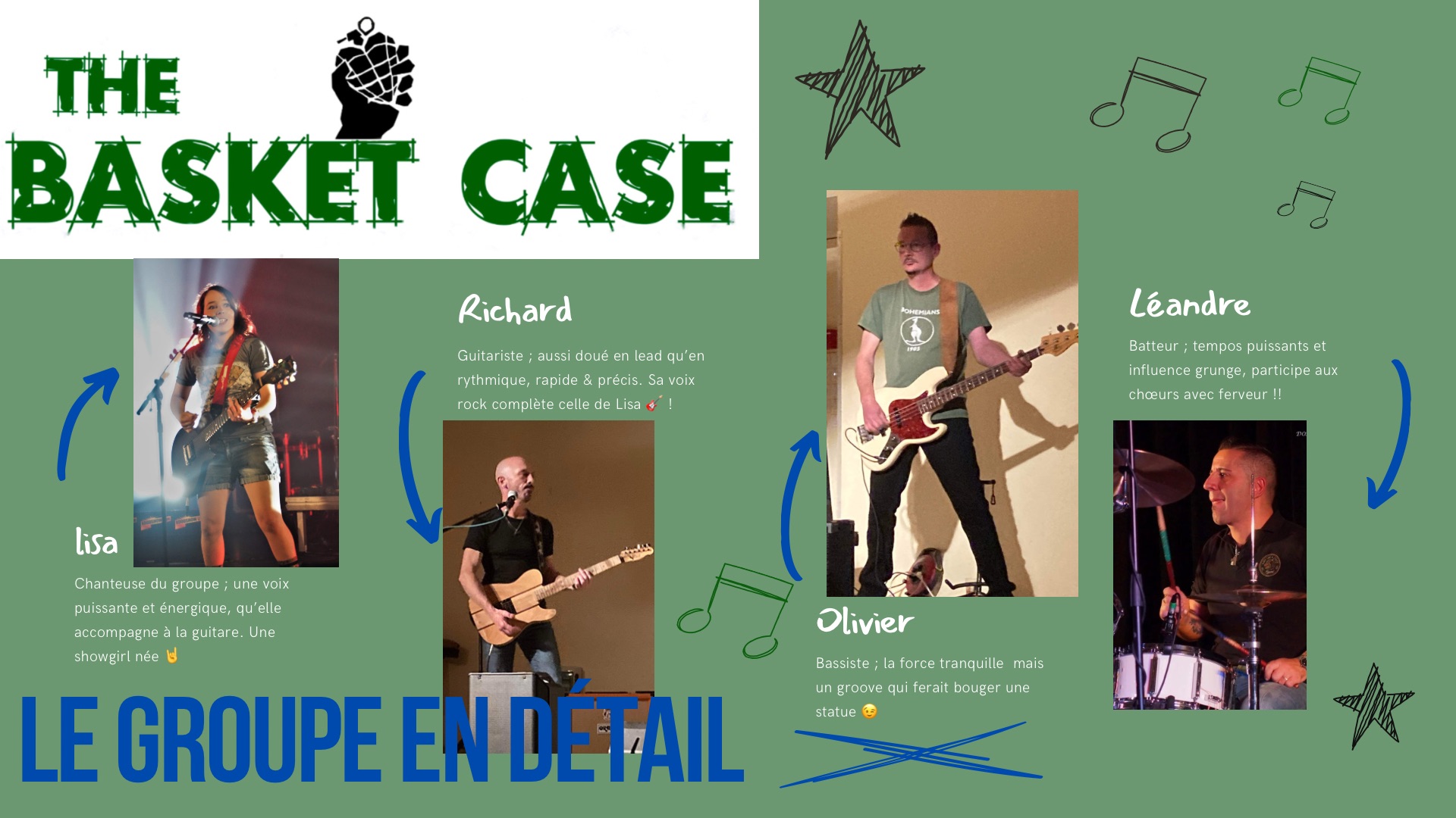 Aujourd’hui j’ai la chance de jouer avec la fabuleuse équipe de « The Basket Case » et c’est le top. Un tribute band de Green Day avec pour le moment une set-list de 15 morceaux piochés dans les titres phares du groupe.