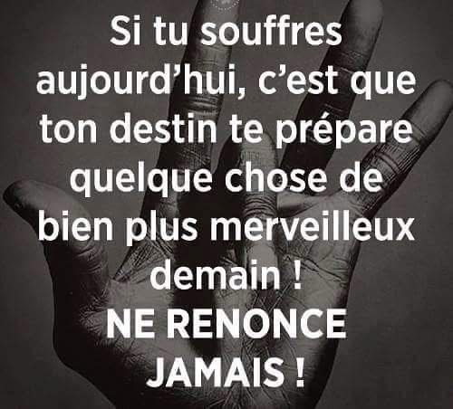 « Si tu souffres aujourd’hui, c’est que ton destin te prépare quelque chose de bien plus merveilleux demain. NE RENONCE JAMAIS ! »